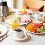 Landhaus Bergkrone nabízí bufetovou snídani denně. Restaurant je zhruba 400 metrů od hotelu a nabízí německou kuchyni.